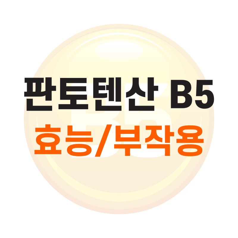 비타민 B군에 해당하는 성분들은 모두 수용성 비타민에 해당하므로, 과다 섭취되는 경우 대부분 소변으로 배출됩니다. 따라서 판토텐산 또한 과다 섭취로 인한 부작용이 거의 없으나, 너무 지나치게 복용을 하거나 기존에 복용하던 약이 있는 경우 몇 가지 부작용이 발생할 수 있습니다.