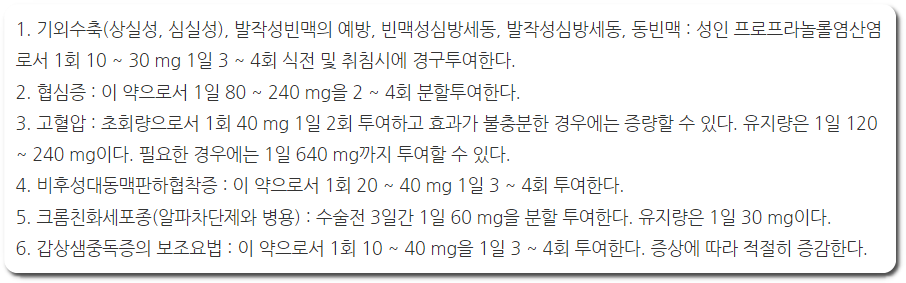 성분 : 프로프라놀롤염산염 10mg